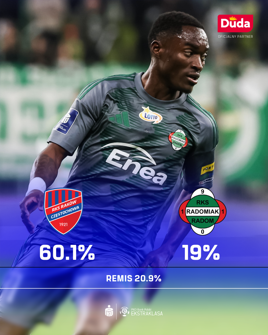 SYTUACJA: Raków Częstochowa przegrał w debiucie Łukasza Tomczyka, ale stworzył sobie bardzo wiele okazji. Radomiak Radom natomiast jeszcze w 2026 roku nie grał, więc o formie tych drużyn więcej dowiemy się po dzisiejszym spotkaniu.