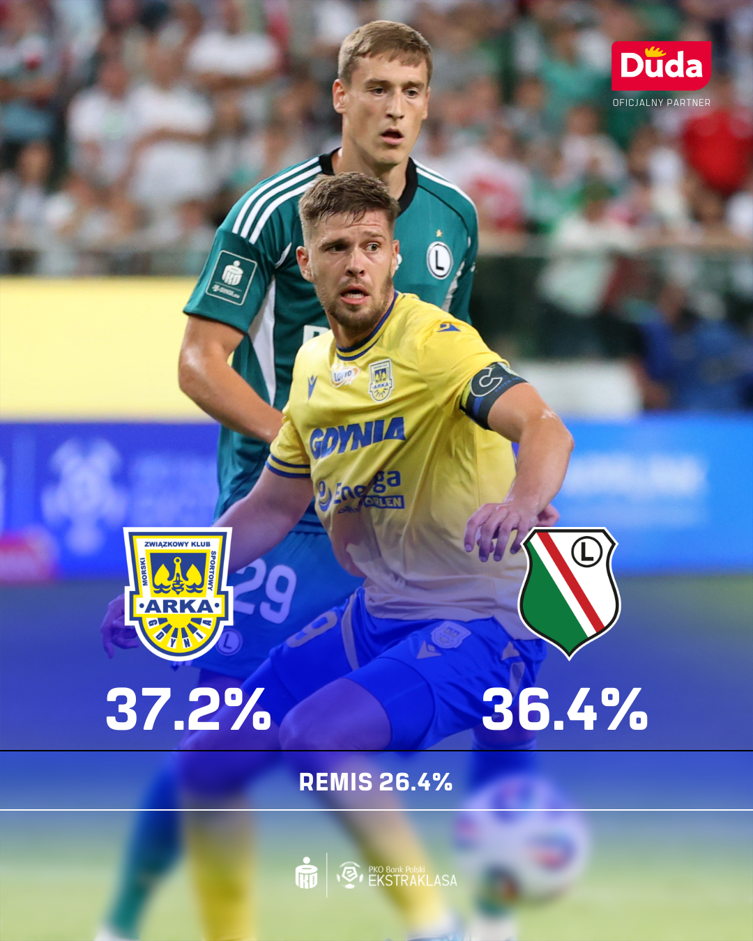 HISTORYCZNIE: 4 ostatnie mecze między nimi w Gdyni rozstrzygnęły się różnicą 1 gola. Bilans w tym mieście przemawia na korzyść przyjezdnych: 2 zwycięstwa Arki, 5 remisów, 9 zwycięstw Legii.