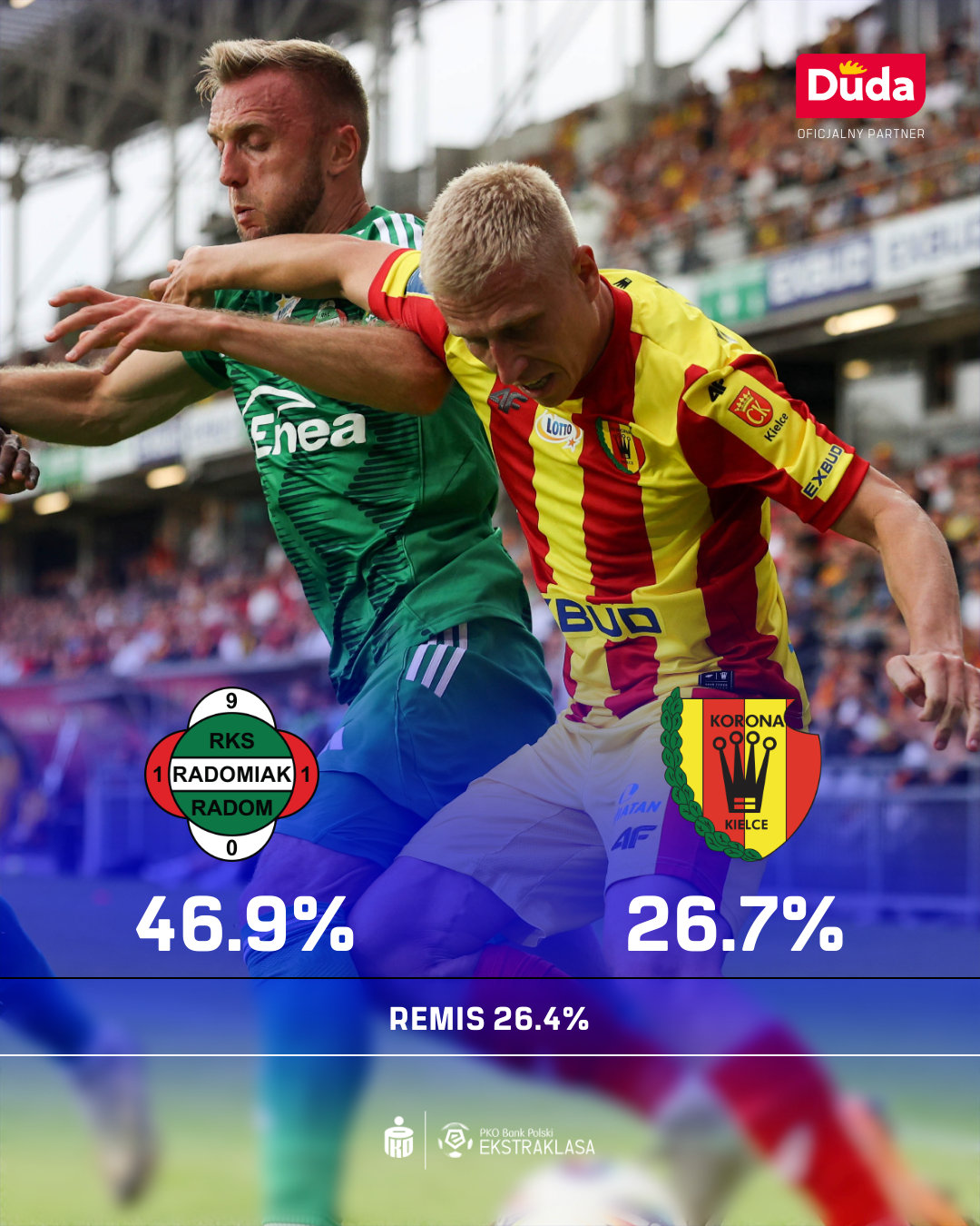 SYTUACJA: 21. kolejkę PKO Bank Polski Ekstraklasy otworzy starcie sąsiadów w tabeli – oba zespoły zgromadziły dotychczas po 27 punktów. Korona rozpoczęła 2026 rok od wygranej z Legią w Warszawie, ale potem uległa 1:2 KGHM Zagłębiu Lubin. Radomiak zaś w zeszłym tygodniu zremisował 0:0 z Rakowem w Częstochowie.