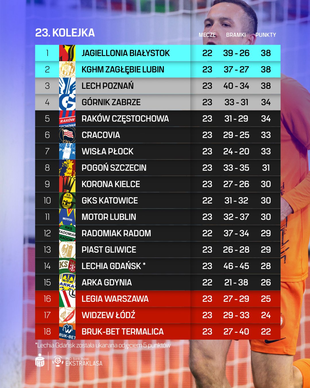 W niedzielę Jagiellonia Białystok szybko wyszła na dwubramkowe prowadzenie z Legią Warszawa. Piłkarze Marka Papszuna znów pokazali charakter, którego oczekuje od nich trener i zdołali wyrównać i ostatecznie zremisować. Był to ich czwarty nieprzegrany mecz z rzędu. W starciu Lecha Poznań z Rakowem Częstochowa oglądaliśmy aż 7 bramek i trudno stwierdzić, który moment spotkania zachwycił nas najbardziej. Do historii przeszedł Ivi Lopez, który został pierwszym zawodnikiem z 50 bramkami dla Rakowa Częstochowa w Ekstraklasie, a także Yannick Agnero, który po strzale piętą w doliczonym czasie gry przechylił szalę na korzyść Lecha Poznań. Dla Iworyjczyka był to 3. gol w Ekstraklasie i 3. strzelony po 89. minucie gry.