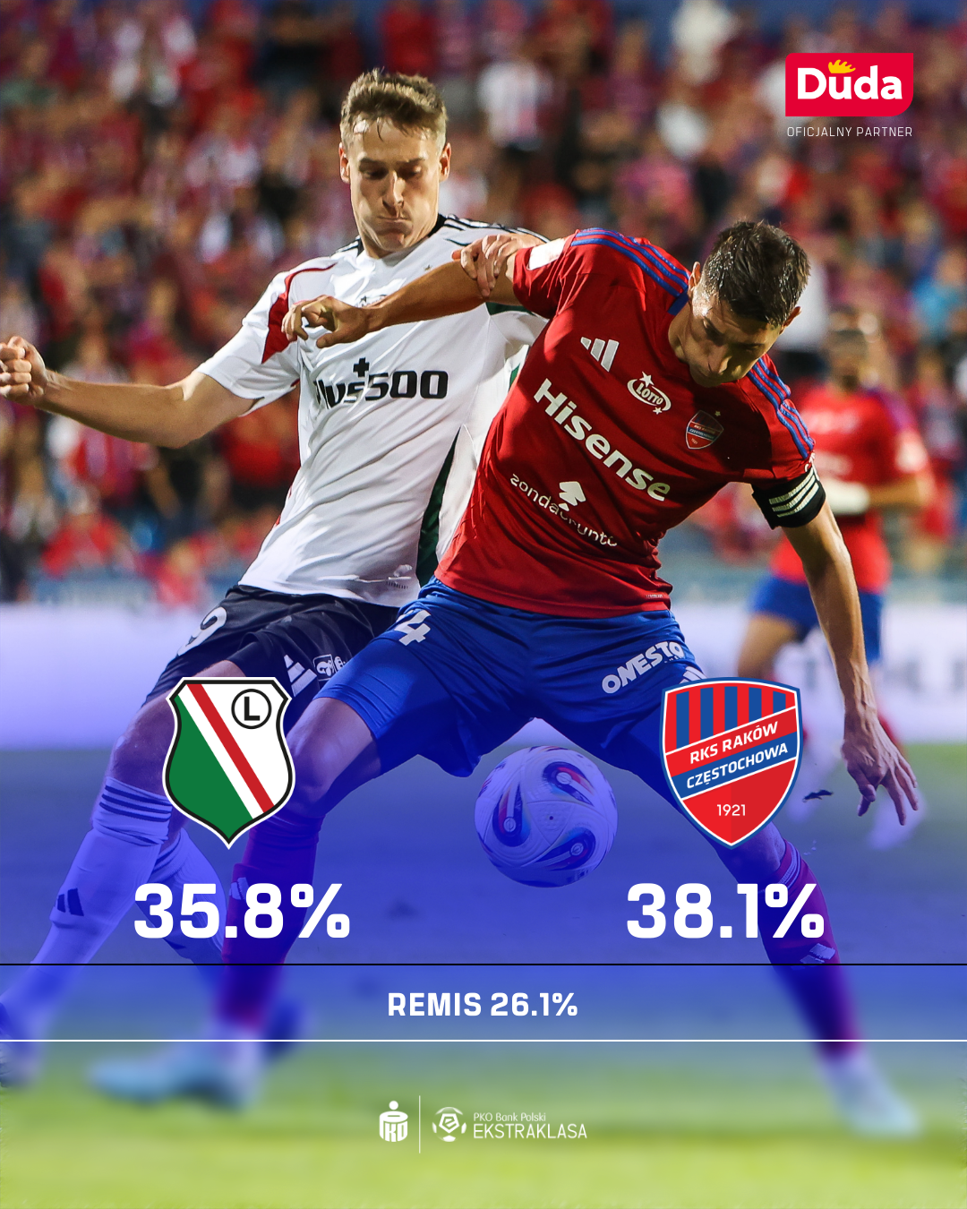 HISTORYCZNIE: Legia Warszawa wygrała 70% meczów z Rakowem u siebie (7 z 10). Średnio w meczach między nimi przy Łazienkowskiej pada 3,3 gola.