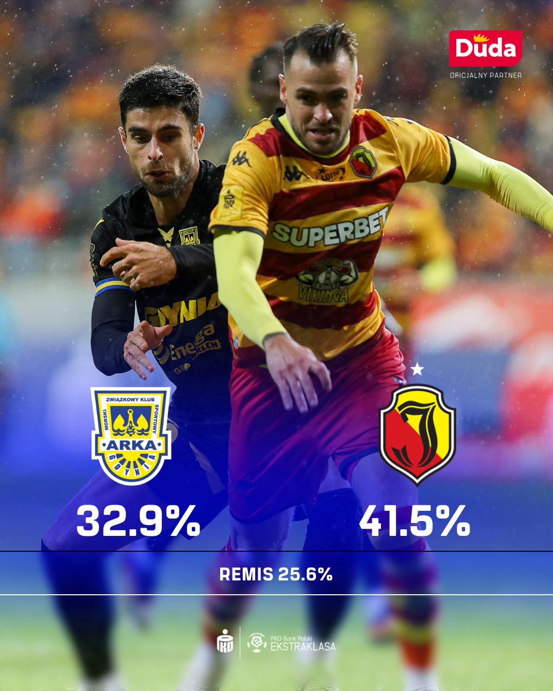 SYTUACJA: Arka Gdynia marzy o utrzymaniu - aby to osiągnąć, musi utrzymać dobrą dyspozycję. Jagiellonia Białystok ostatnio jest bez formy, ale wciąż jest w grze o najwyższe cele - bez przełamania jednak może być jednak trudno o sukcesy.
